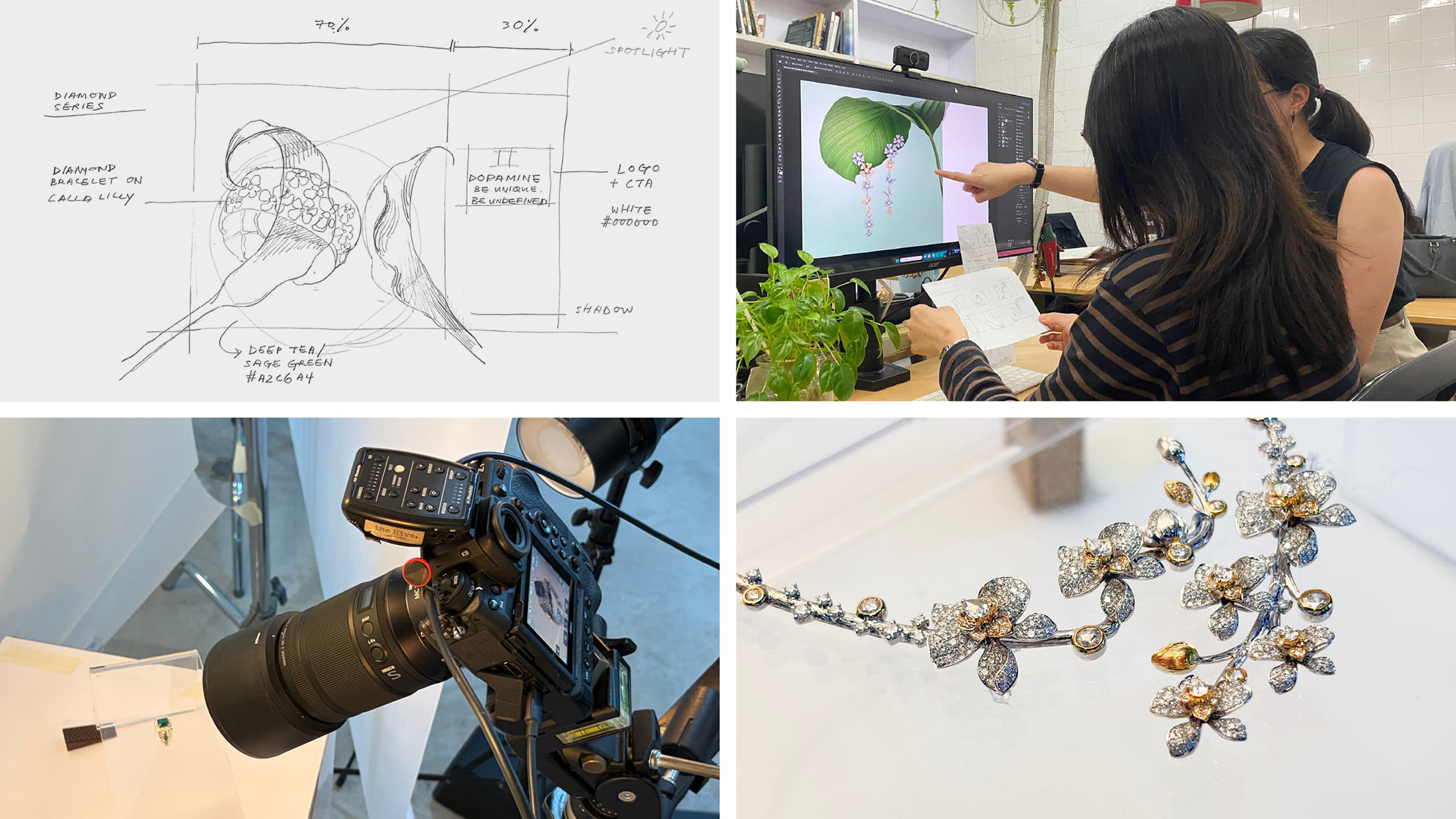 “Each gem is paired with local flora, each flower symbolising a distinct feminine quality, while the jewelry becomes the brilliance that completes her story.”
