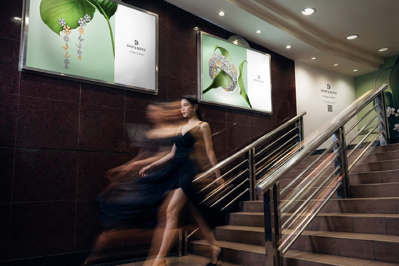 “Located along the high-traffic Ngee Ann City linkway, where over 41,000 visitors pass daily, the visuals needed to cut through visual clutter with bold composition and elegant imagery.”